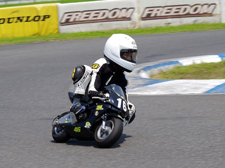 7月5日(日)埼玉県サーキット秋ヶ瀬で「2015DAIJIRO-CUP ポケットバイクレース」第4戦が開催された。レース開催週は雨が降り続き、週末の天候が心配されたが、それも金曜日までの話、前日練習日の土曜日、決勝日の日曜と快晴、真夏日となった。高い気温に大人達はうんざりと言った感じだが、キッズライダー達は元気いっぱいの様子だった。![]()