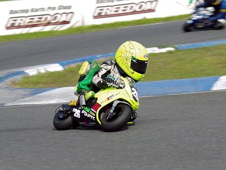 フレッシュマンクラスは規定タイムの35秒を切ると章典外となる比較的挑戦しやすいカテゴリーだ。今回は9台がエントリー、予選トップはNo,16河合凰雅選手、決勝レースではNo,12谷上蒼空選手が好スタートを決めてトップに立つが、徐々に河合選手が追い上げてトップを奪いそのままゴール、1位に河合選手、2位に谷上選手、3位にNo,5藤原選手、4位にNo,3中谷健心選手が入賞した。