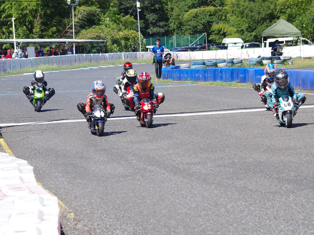 決勝レース、ホールショットはNo,47菅原汐恋奈選手、No,8下家丸絆穰選手も4番グリッドから好スタートを決めて菅原選手に続く。