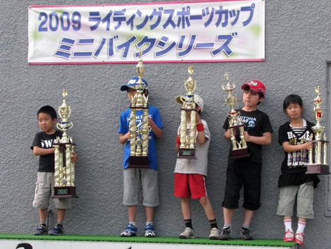 表彰台では予想外の特大トロフィーを重そうに抱えるライダーに、見守るお父さんたちは大喜びだった。次戦